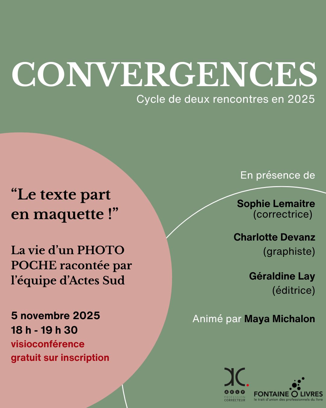La première rencontre du cycle Convergences 2025, organisé par l’ACLF et Fontaine O Livres, se déroulera le mercredi 5 novembre, de 18 heures à 19 h 30, en visioconférence.