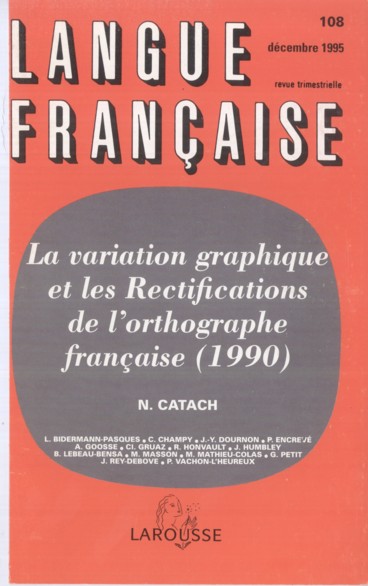 Langue française, no 108, 1995. La variation graphique et les rectifications de l’orthographe française